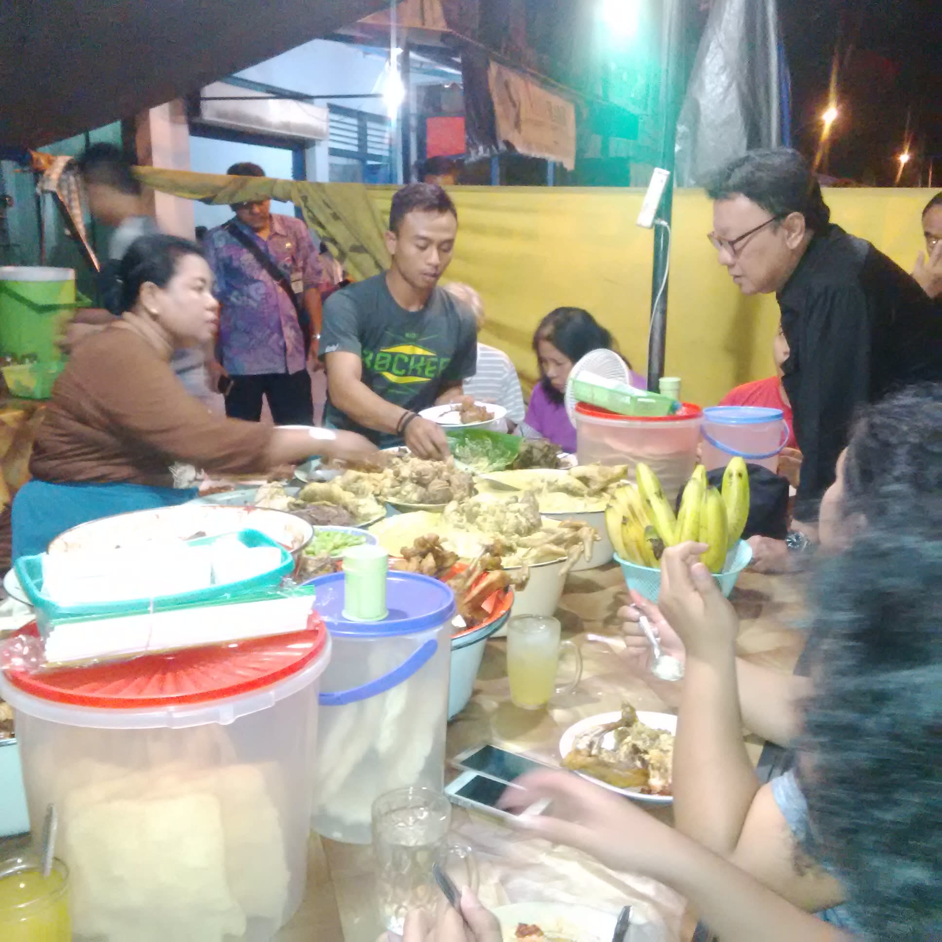 Bada Isya, rombongan kembali meluncur meninggalkan rumah pribadi Menteri Tjahjo. Dan, di pinggir sebuah jalan, di dekat warung tenda kaki lima yang nampak sesak dengan pembeli, rombongan berhenti. Ternyata, di warung itu, kami diajak makan malam. Warungnya sederhana, laiknya warung tenda kaki lima. Warung makan Mbak Tum, demikian namanya yang terletak di Jalan Majapahit, Semarang.
