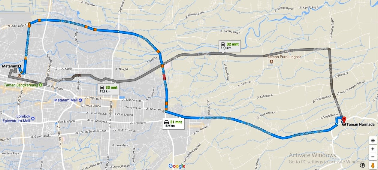 Bagi pelancong yang lebih suka menggunakan alat transportasi umum, dapat memilih taksi dengan tarif kurang lebih 75 ribu rupiah. Tetapi jika ingin lebih irit, sebaiknya naik angkutan kota saja dari terminal Mandalika yang tarifnya hanya sekitar 10 ribu rupiah.